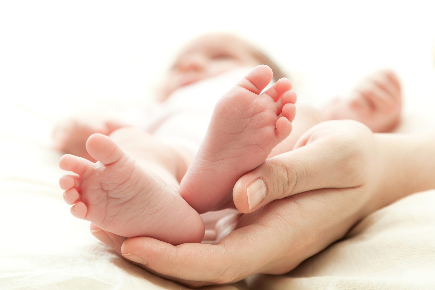 the mother’s hand holds legs